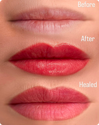 Lip blushing is a form of semi-permanent makeup. It enhances the beauty of the natural lip color, improving the shape of the lips, giving definition and the illusion of fullness.